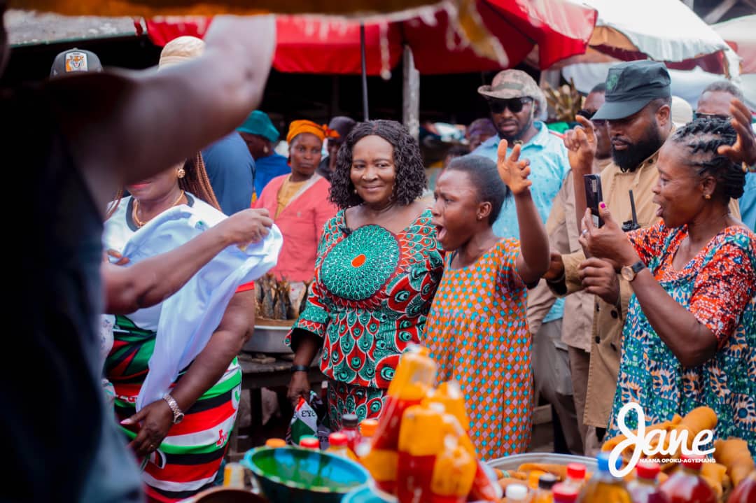 At the Mallam Atta Market, hundreds of traders left their wares to welcome Prof. Opoku-Agyemang, who assured them of better economic environment and livelihoods under the next NDC government.